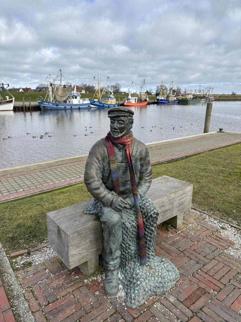 Diese Bronzestatue des Künstlers Hans-Christian Petersen befindet sich seit 2020 an der Ostseite des Hafens. Sie zeigt einen Netzflicker bei seiner typischen Arbeit.